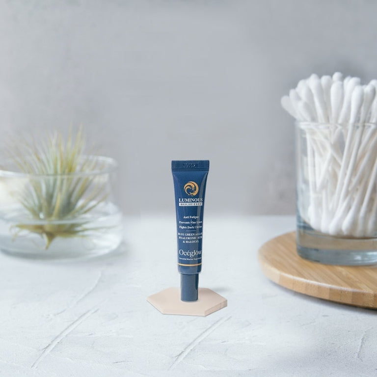 Oceglow’s Luminous Bright Eyes is a decadent eye treatment containing a natural emulsifier that intensely moisturizes for a luxurious instant glow and reduces the appearance of dark circles, de-puffs and smoothens the delicate eye area for a radiant, resilient, youthful look. Its texture penetrates evenly to awaken the eyes and reduce signs of fatigue.Ideal for fatigued and damaged skin, it continues to brighten over time, leaving a refreshed and more youthful look at first use, and for weeks after.